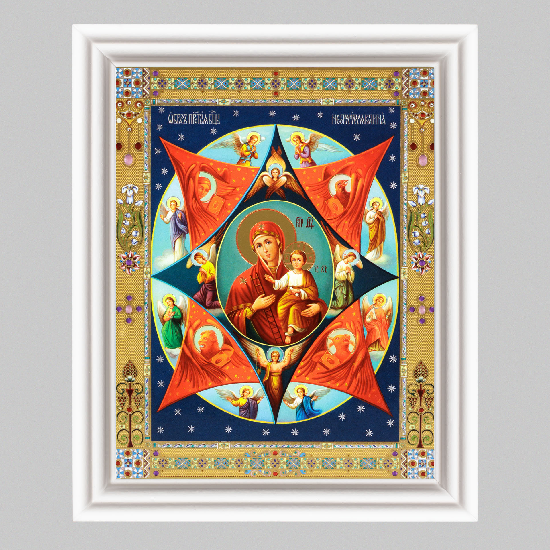 Икона в деревянной рамке №3 11х13 (белая) двойное тиснение Неопалимая Купина 3
