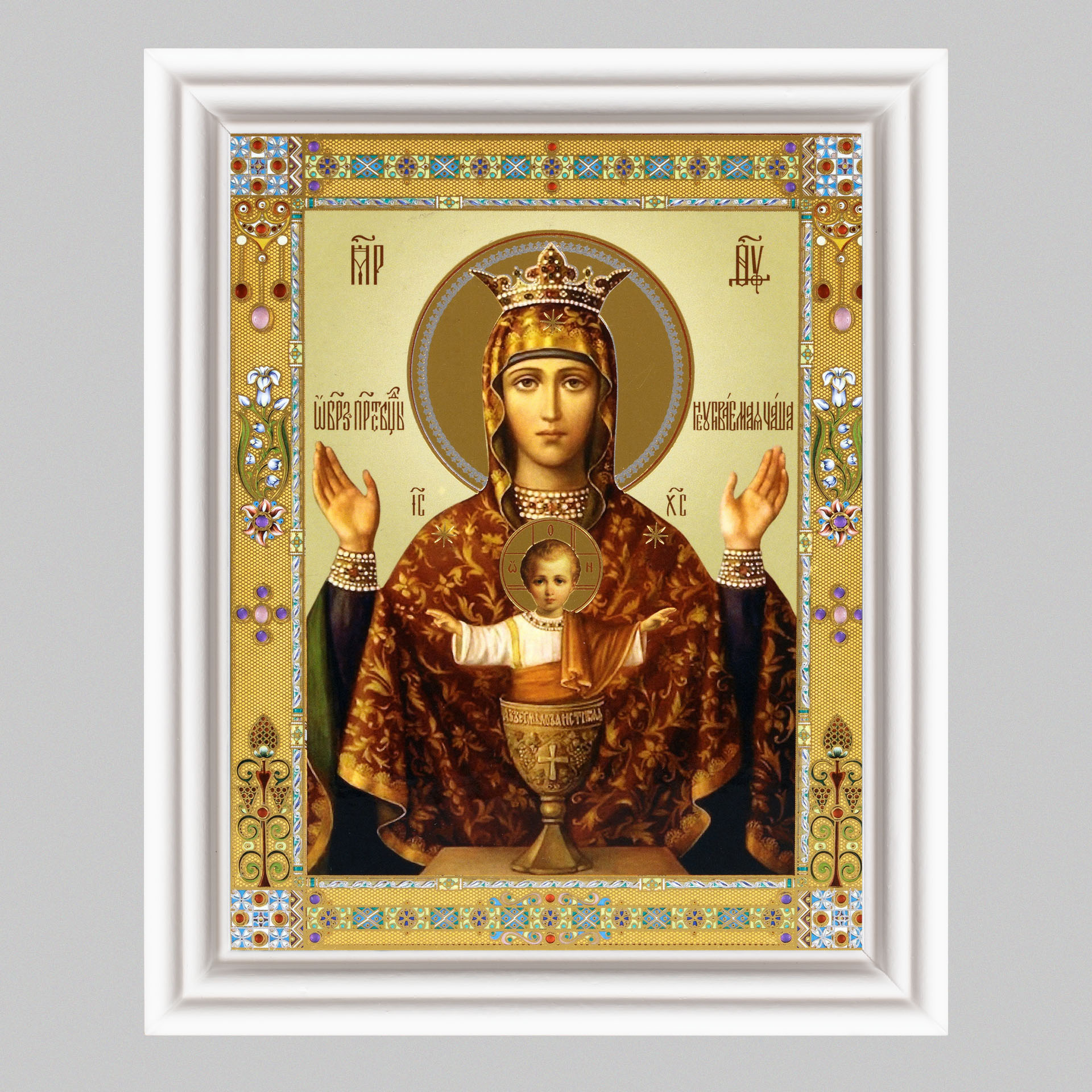 Икона в деревянной рамке №3 11х13 (белая) двойное тиснение Неупиваемая Чаша 5