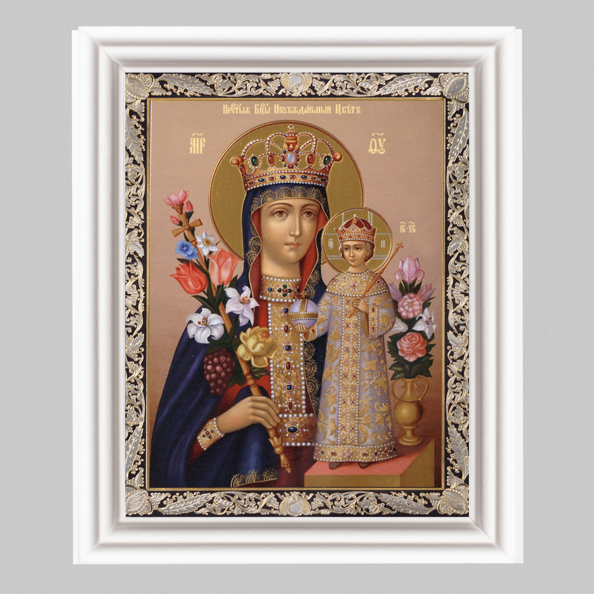 Икона в деревянной рамке №3 11х13 (белая) двойное тиснение Неувядаемый Цвет 4