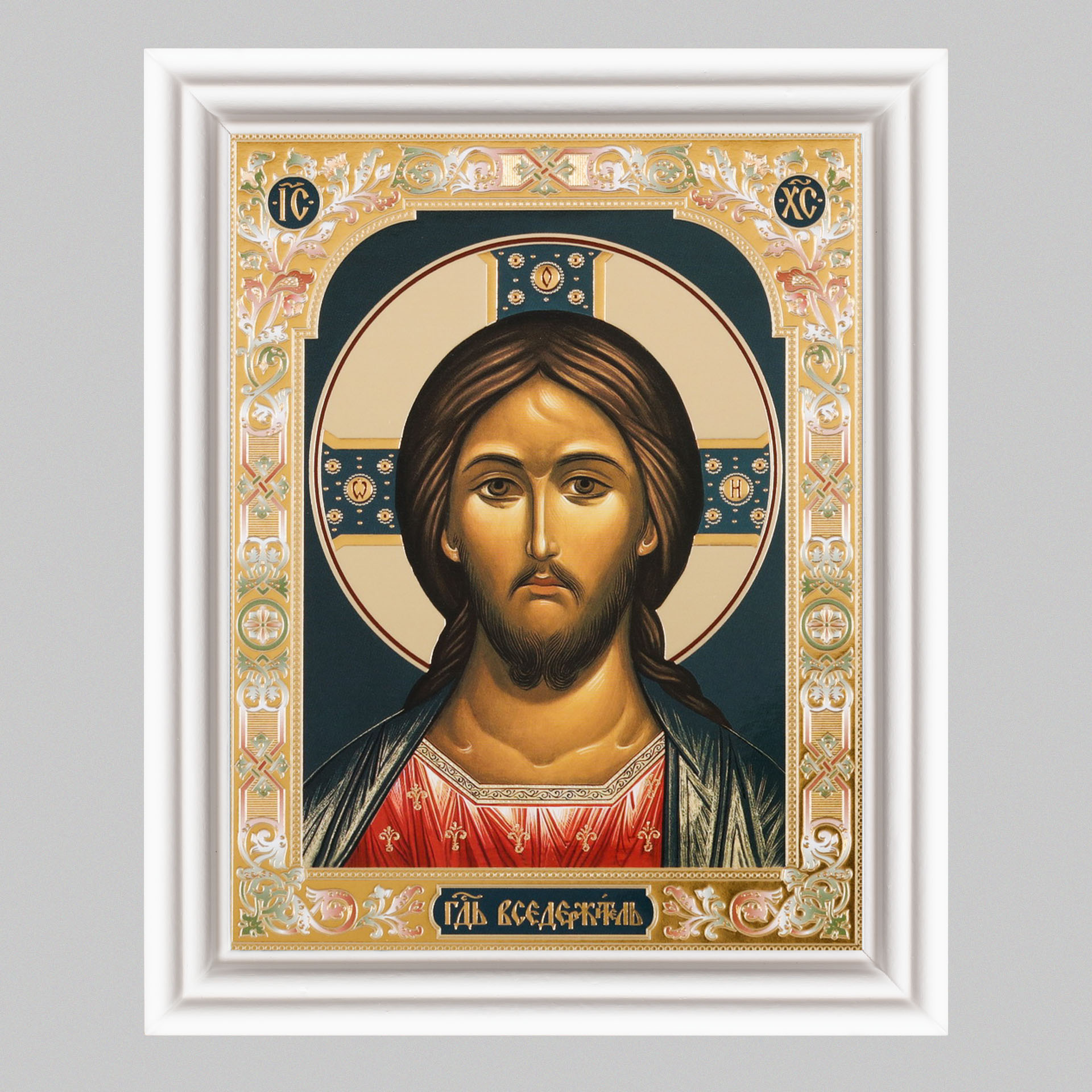 Икона в деревянной рамке №3 11х13 (белая) двойное тиснение Спаситель 29