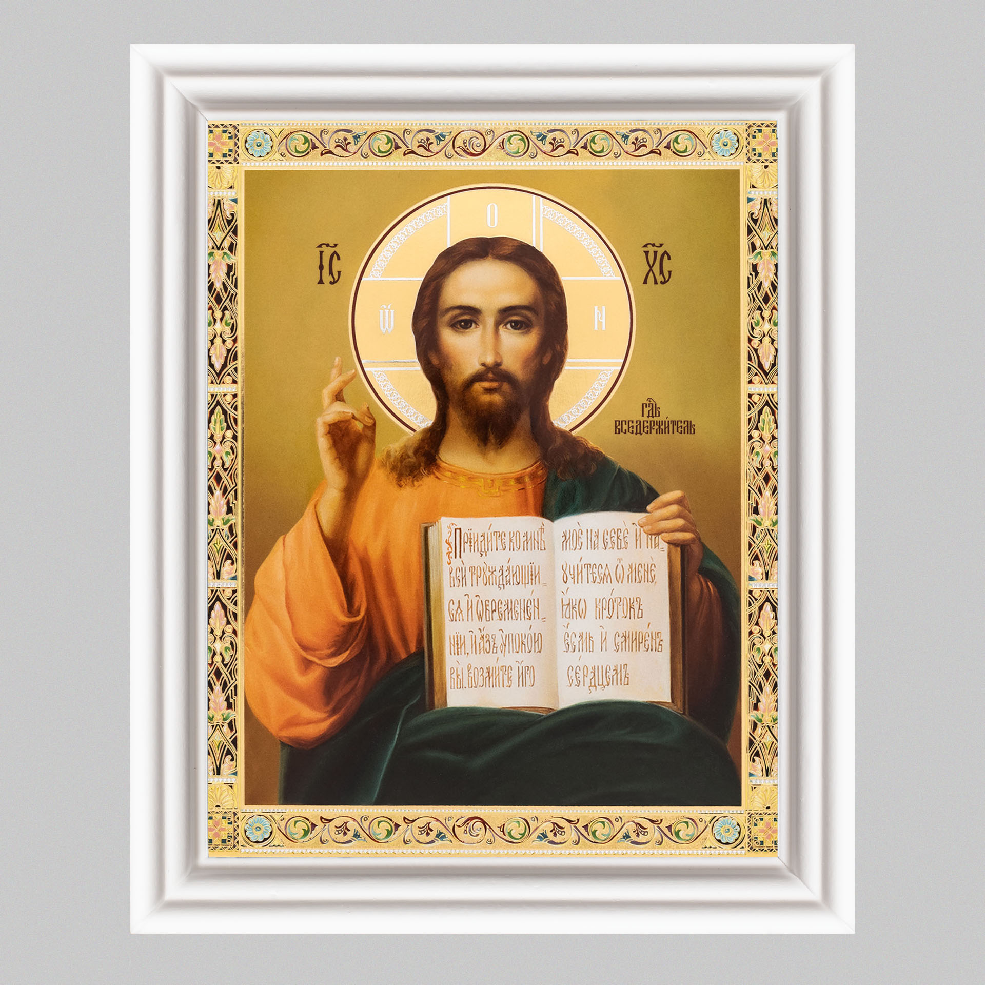 Икона в деревянной рамке №3 11х13 (белая) двойное тиснение Спаситель 40