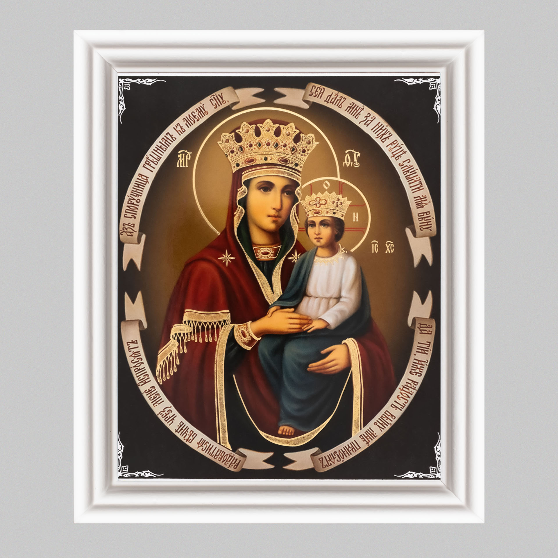 Икона в деревянной рамке №3 11х13 (белая) двойное тиснение Споручница грешных 4