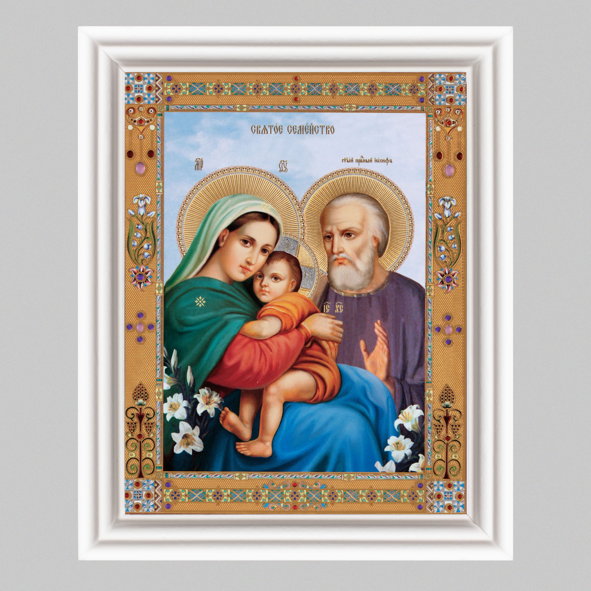 Икона в деревянной рамке №3 11х13 (белая) двойное тиснение Святое Семейство