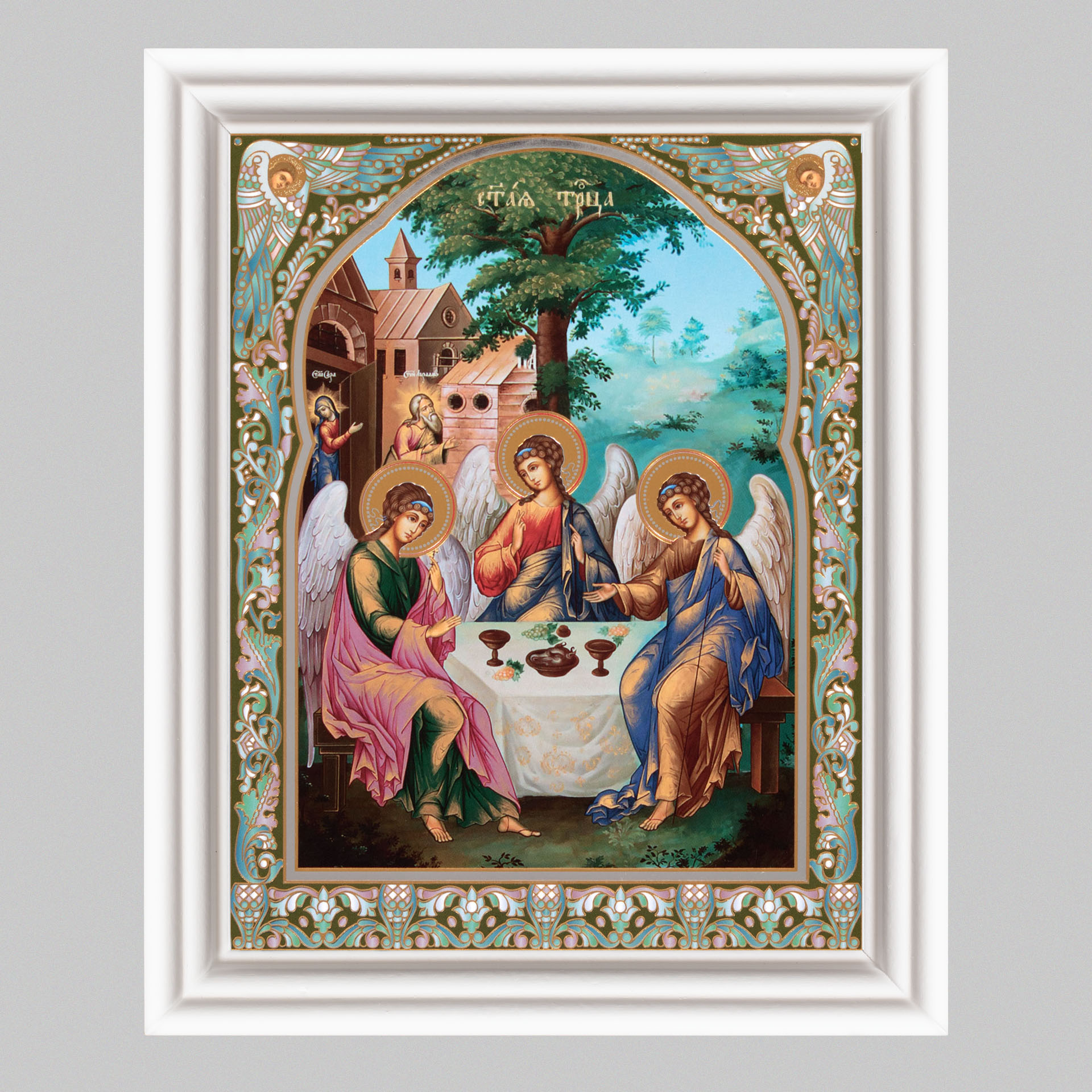 Икона в деревянной рамке №3 11х13 (белая) двойное тиснение Троица 5