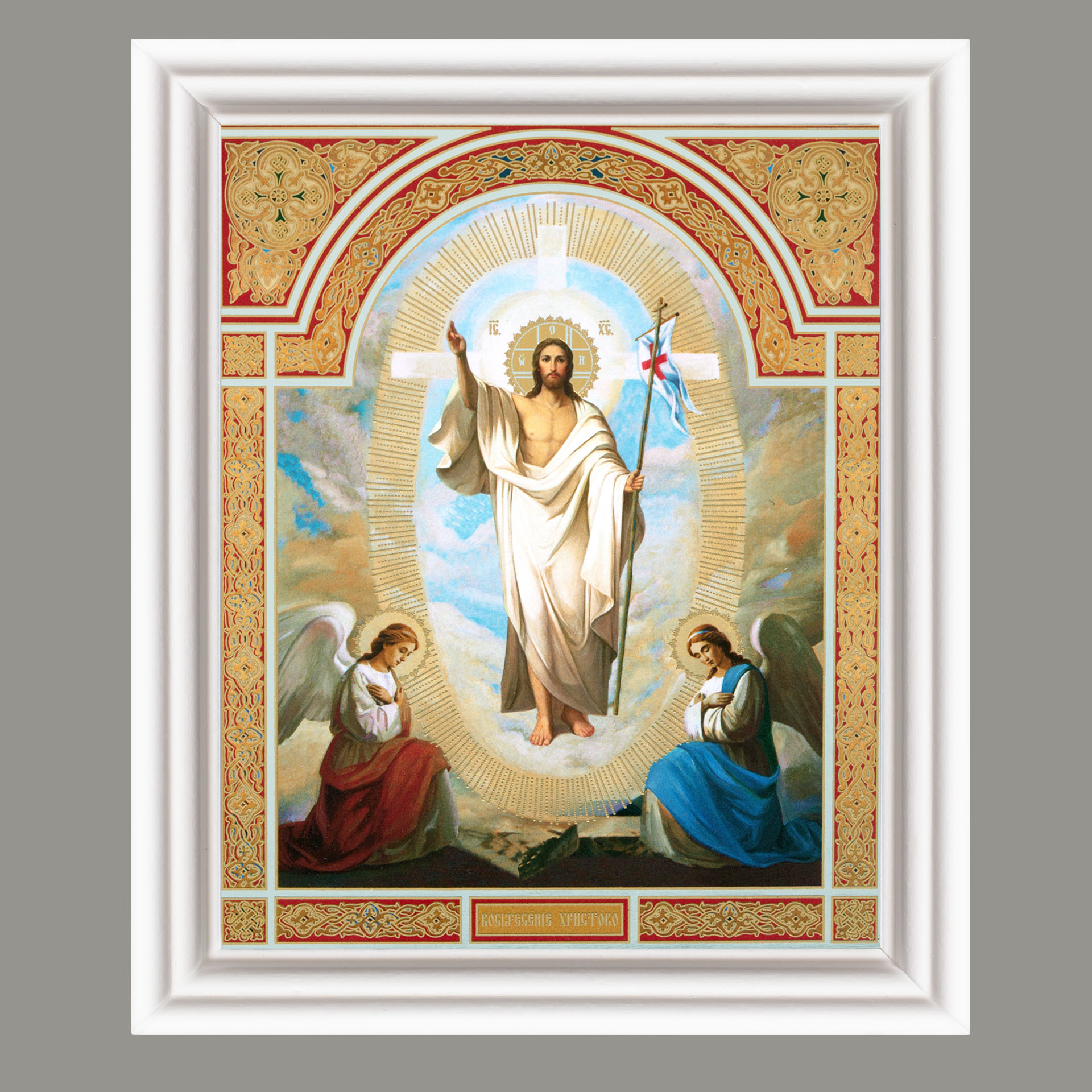 Икона в деревянной рамке №3 11х13 (белая) двойное тиснение Воскресение Христово 47