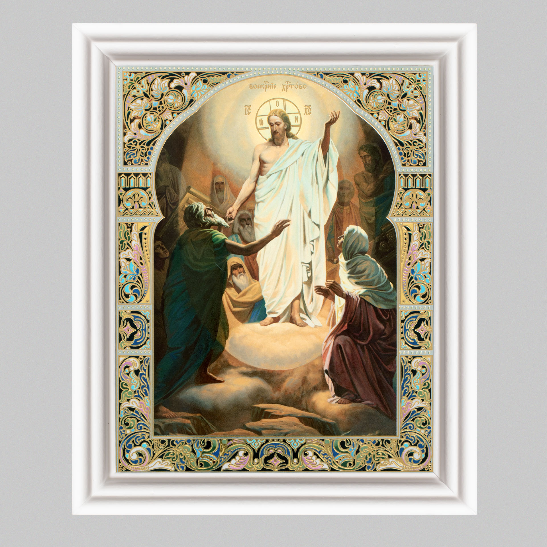 Икона в деревянной рамке №3 11х13 (белая) двойное тиснение Воскресение Христово 68