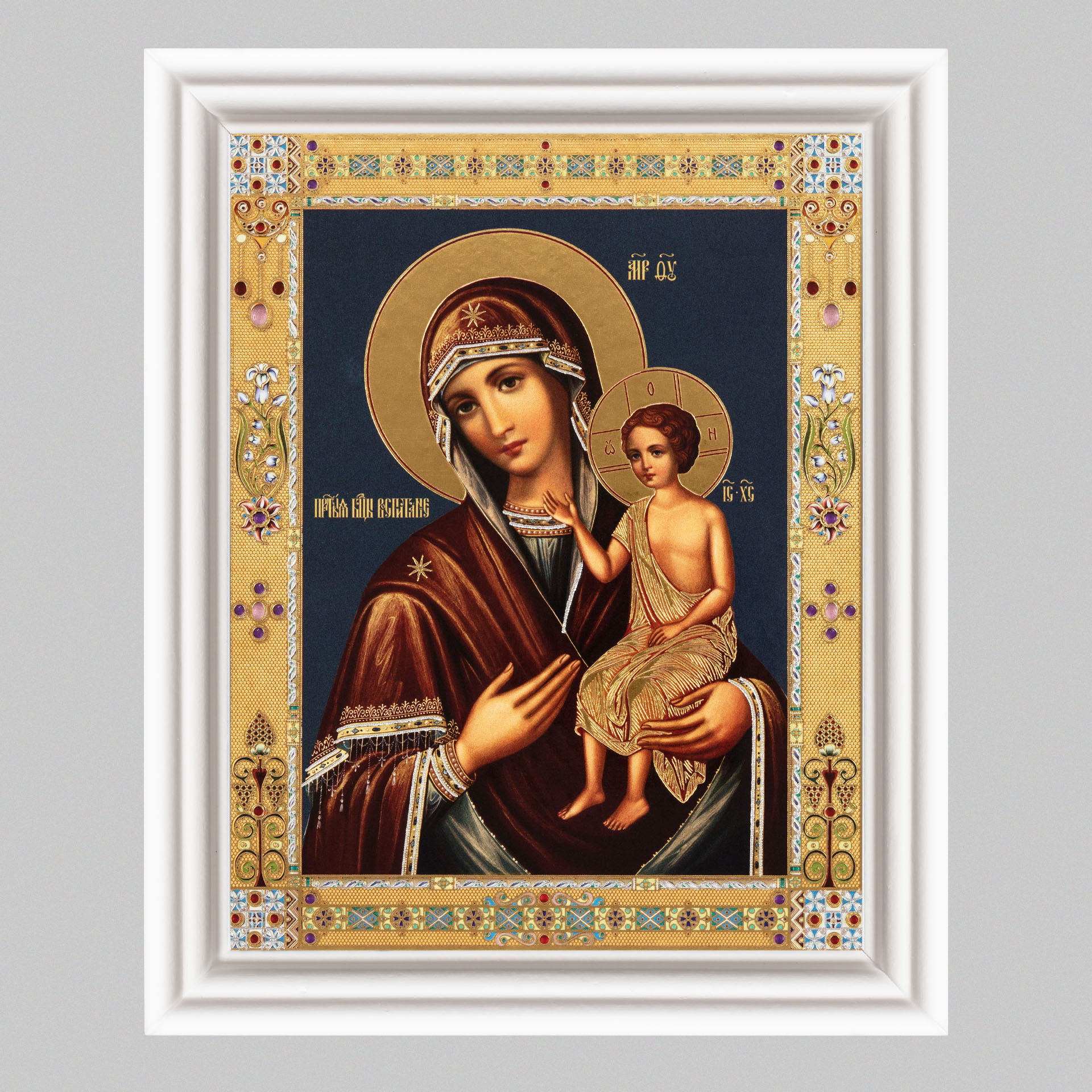 Икона в деревянной рамке №3 11х13 (белая) двойное тиснение Воспитание 2