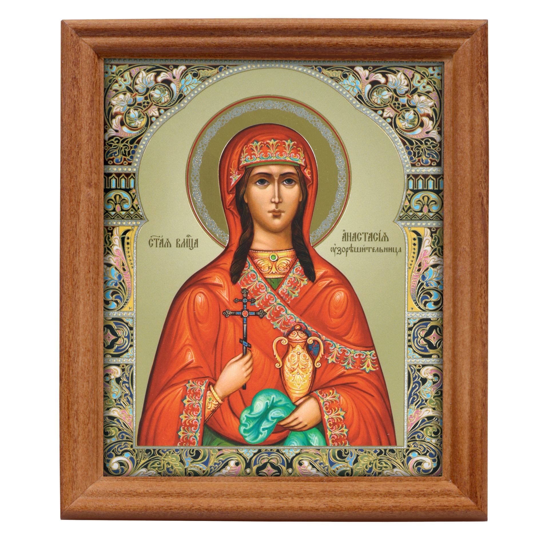 Икона в деревянной рамке №3 11х13 двойное тиснение Анастасия Узорешительница (поясная) №4