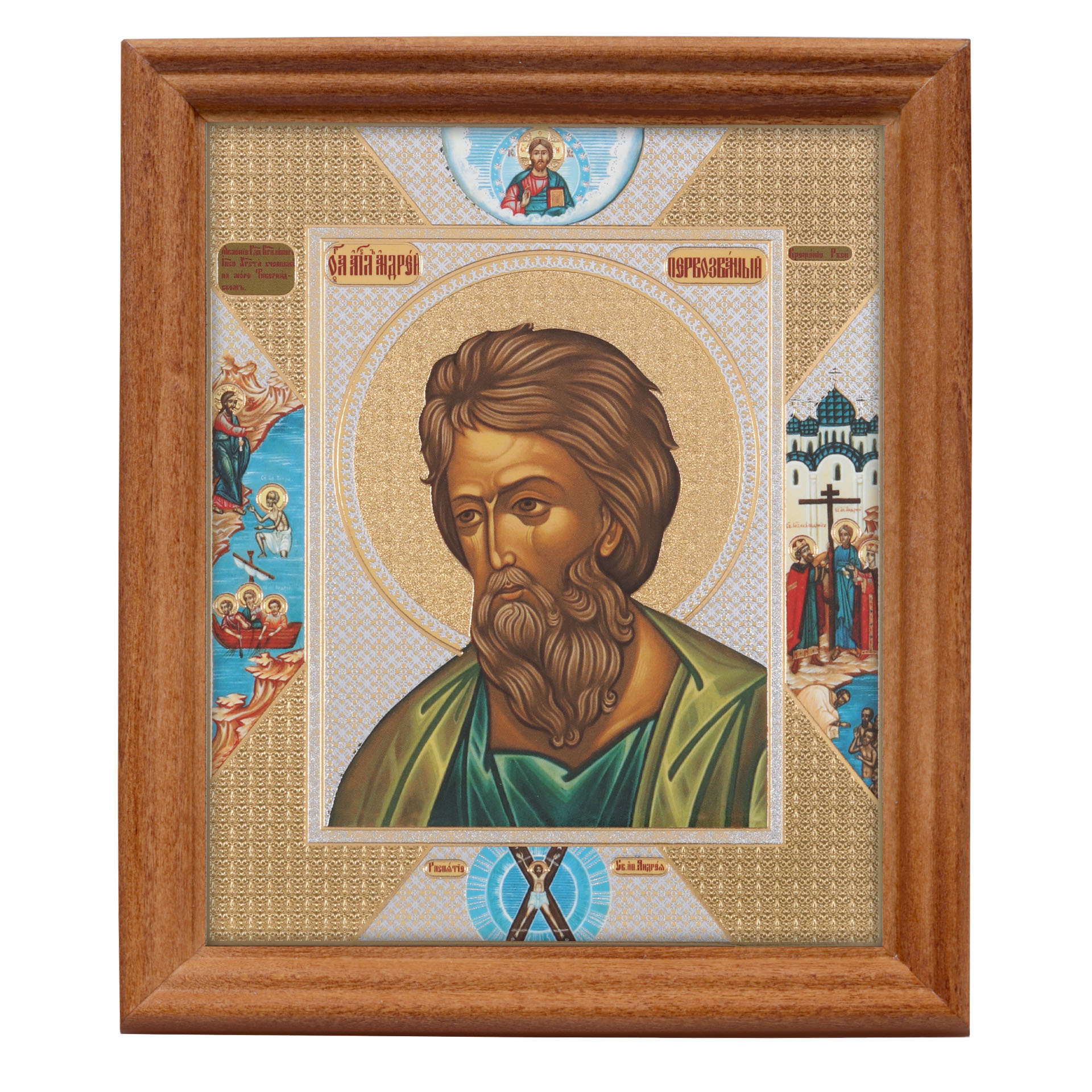 Икона в деревянной рамке №3 11х13 двойное тиснение Андрей Первозванный