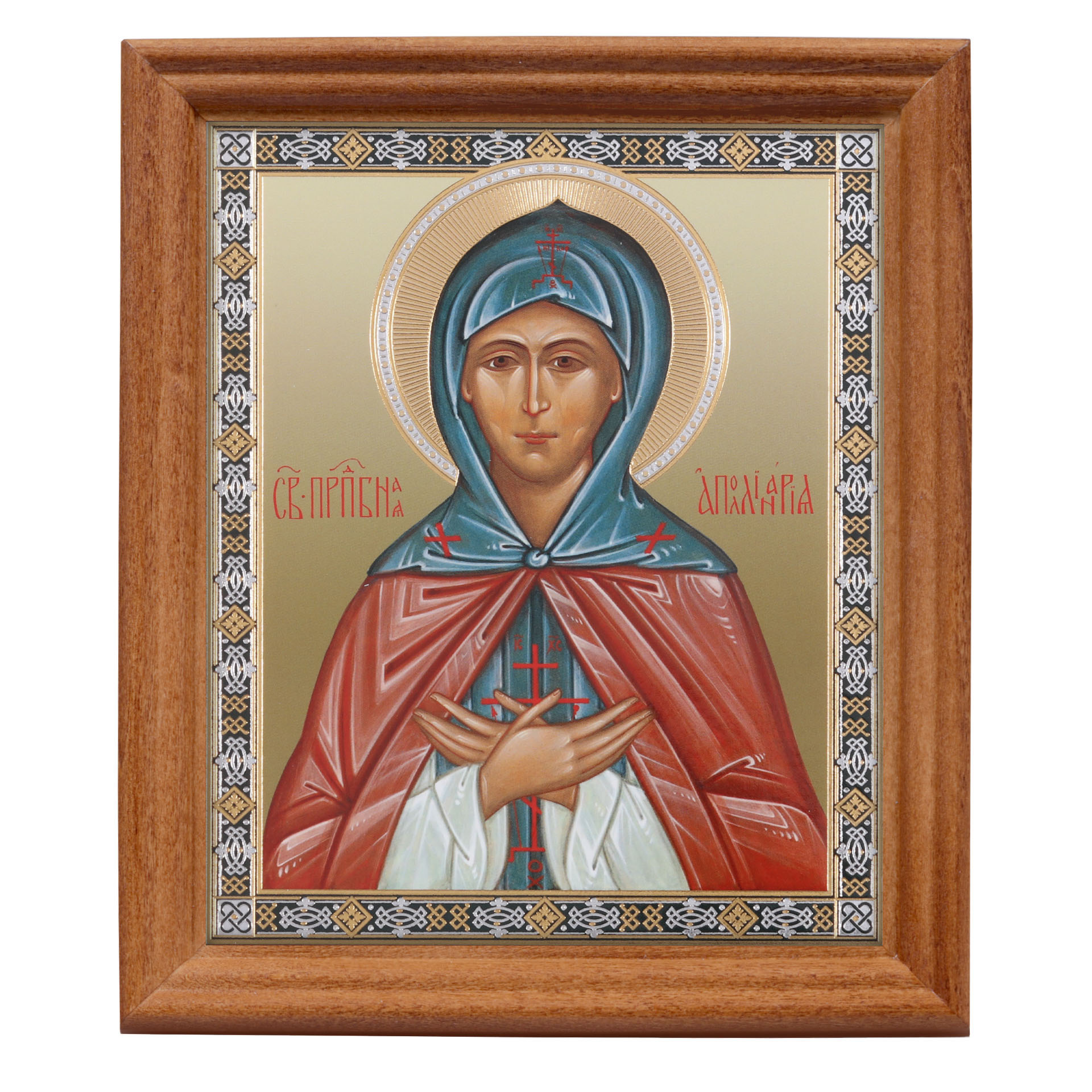Икона в деревянной рамке №3 11х13 двойное тиснение Аполлинария прп.