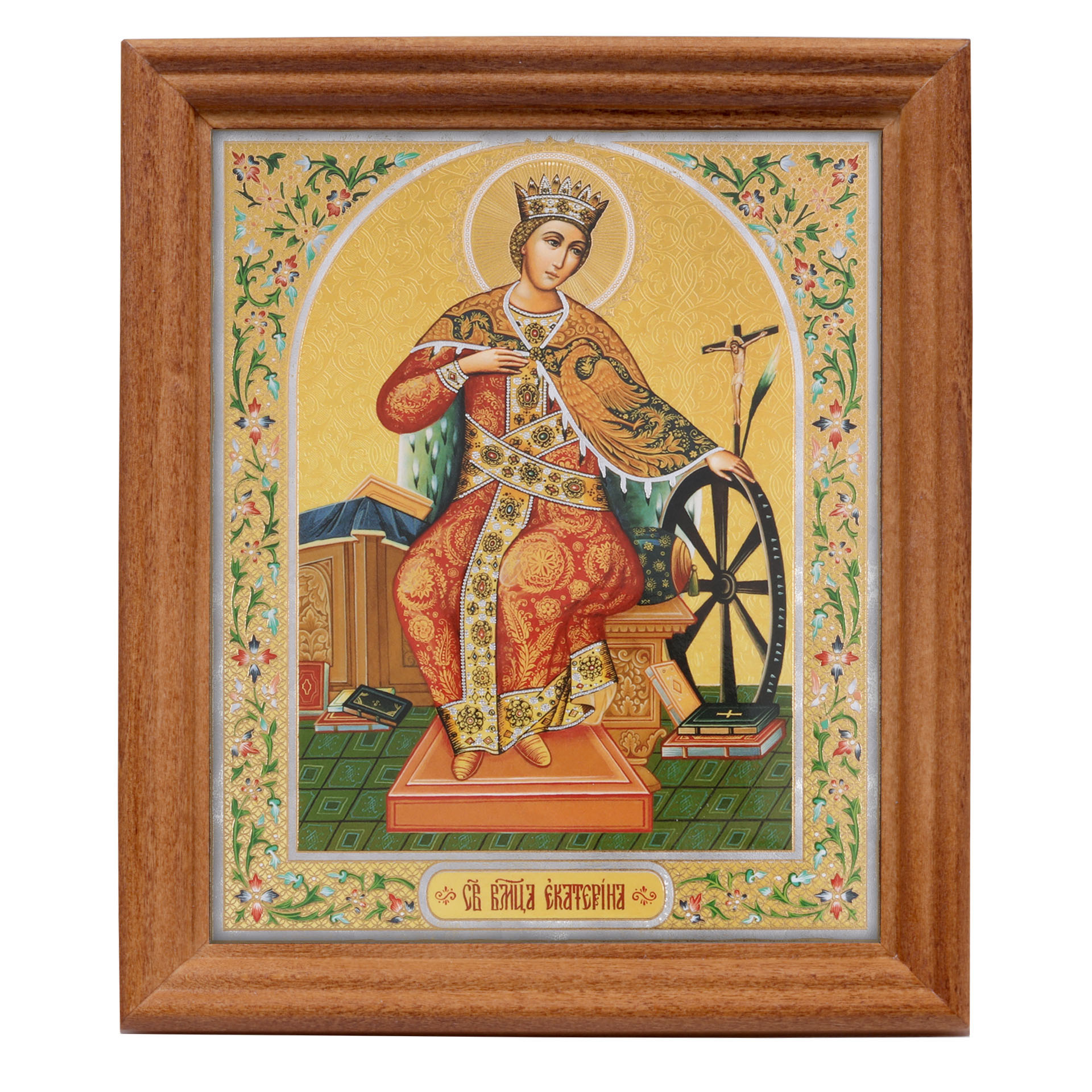 Икона в деревянной рамке №3 11х13 двойное тиснение Екатерина Александрийская, вмц. (2)