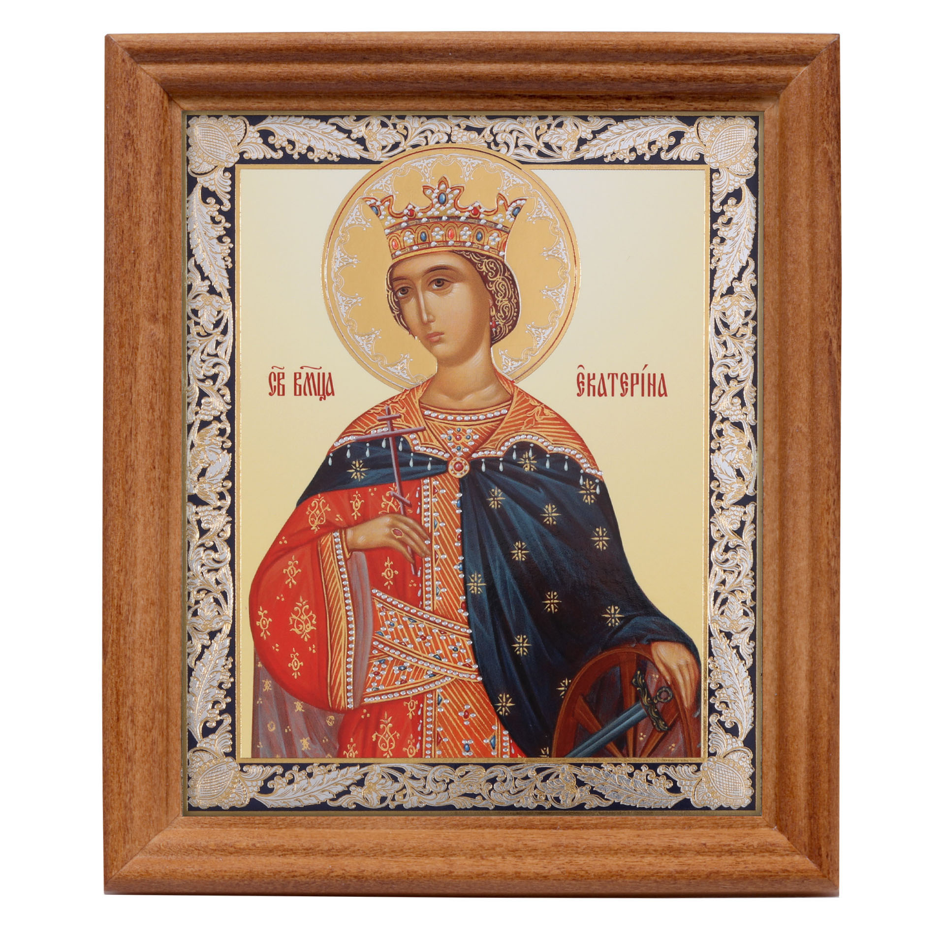 Икона в деревянной рамке №3 11х13 двойное тиснение Екатерина Александрийская, вмц. (3)