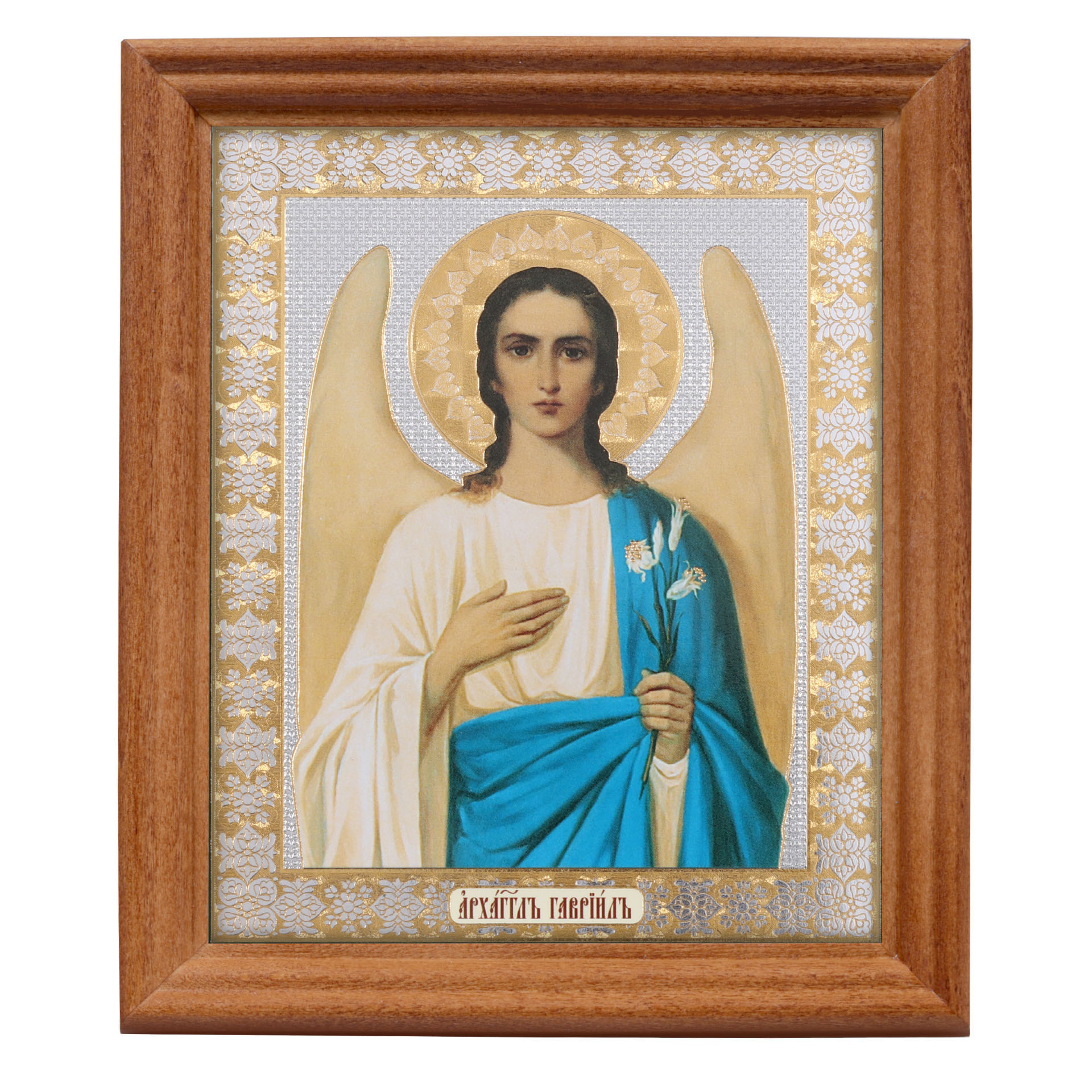 Икона в деревянной рамке №3 11х13 двойное тиснение Гавриил Архангел