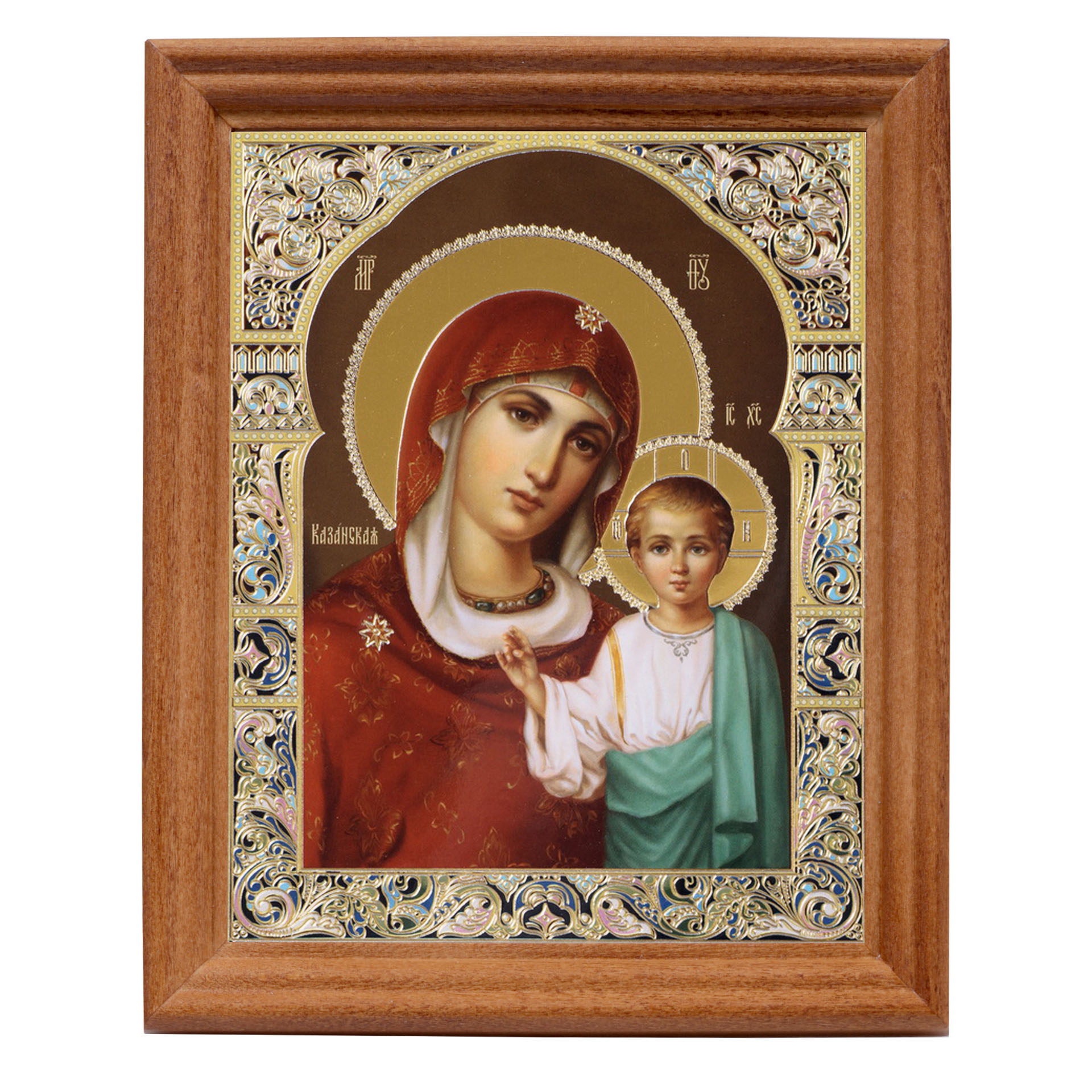 Икона в деревянной рамке №3 11х13 двойное тиснение Казанская БМ 38