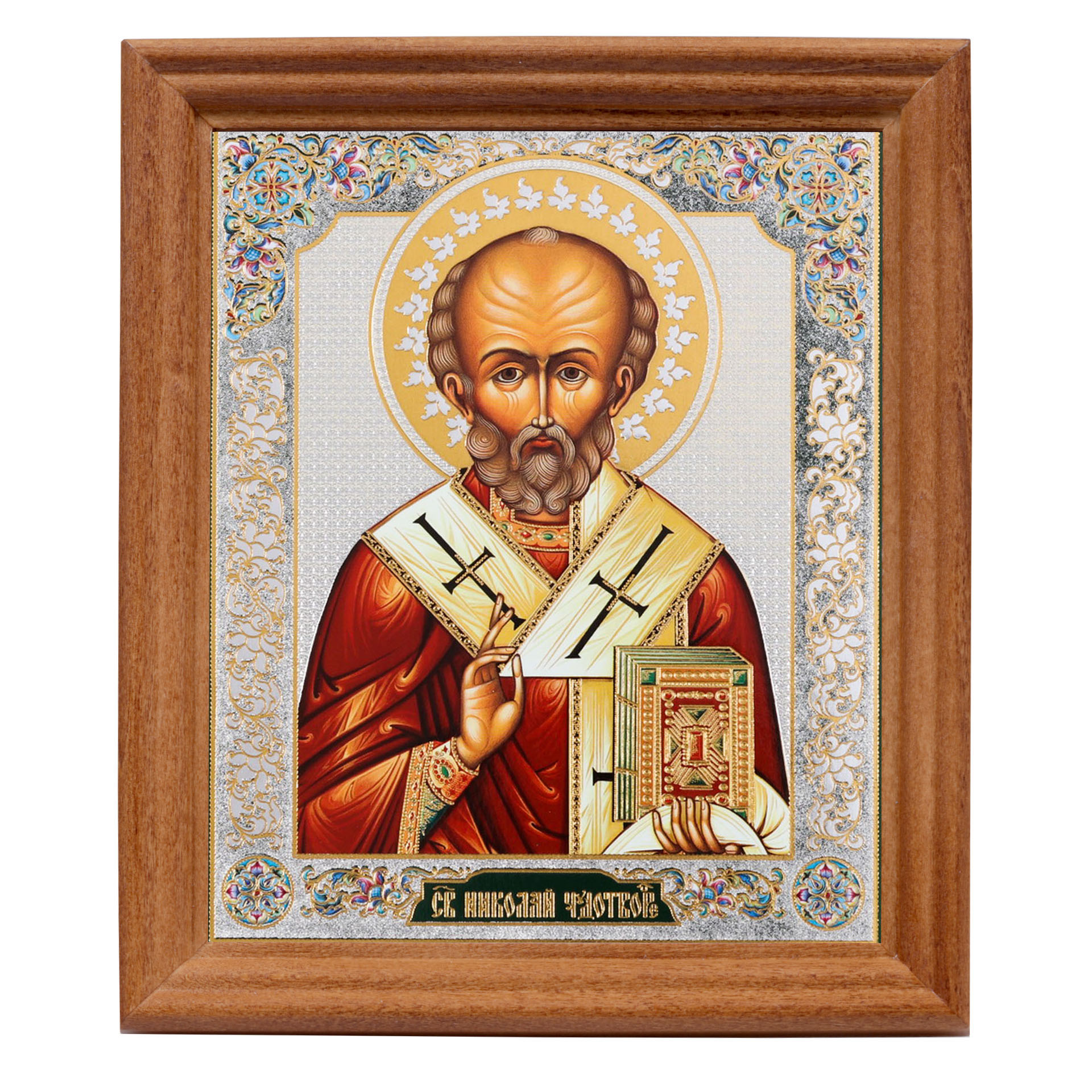 Икона в деревянной рамке №3 11х13 двойное тиснение Николай Чудотворец 10