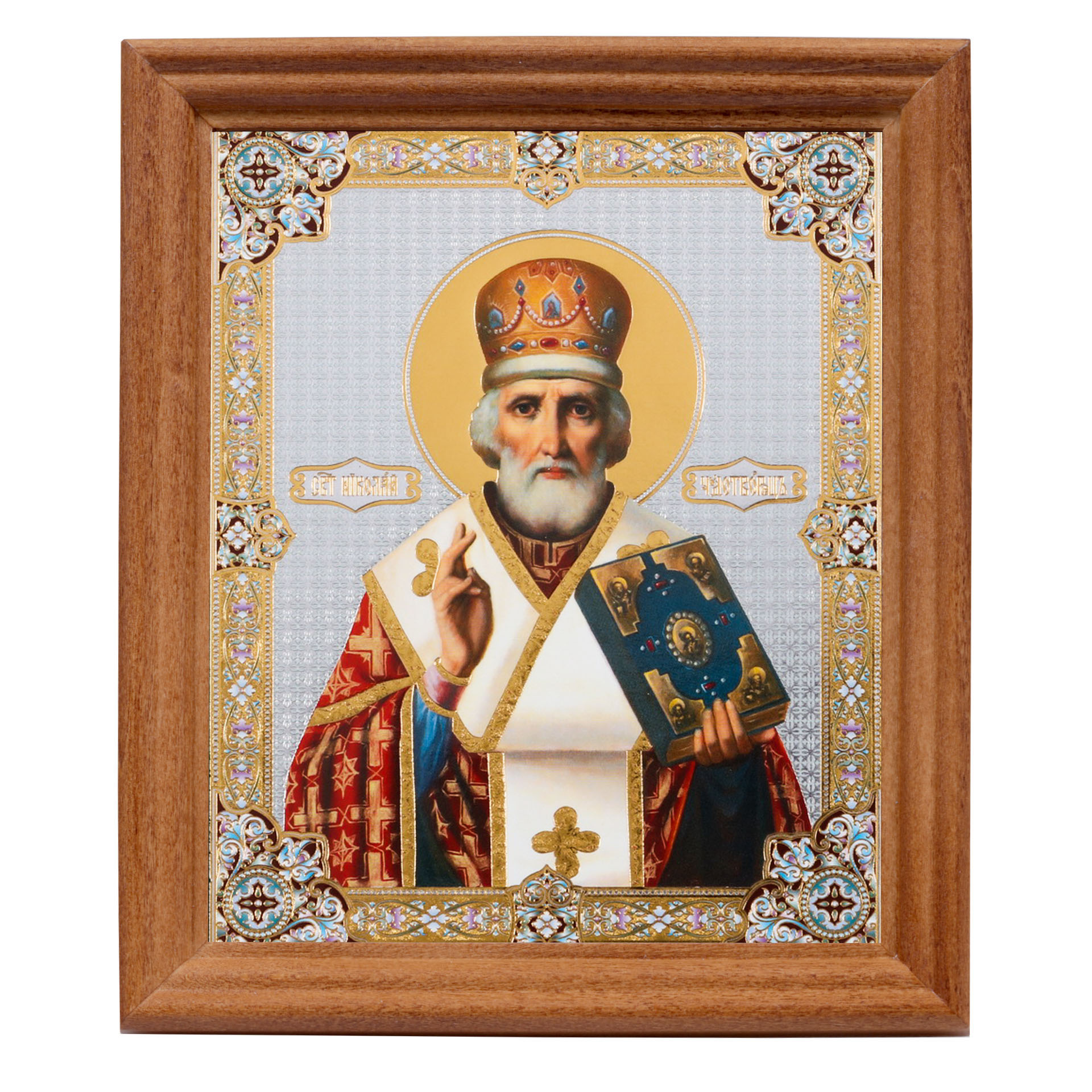 Икона в деревянной рамке №3 11х13 двойное тиснение Николай Чудотворец 14