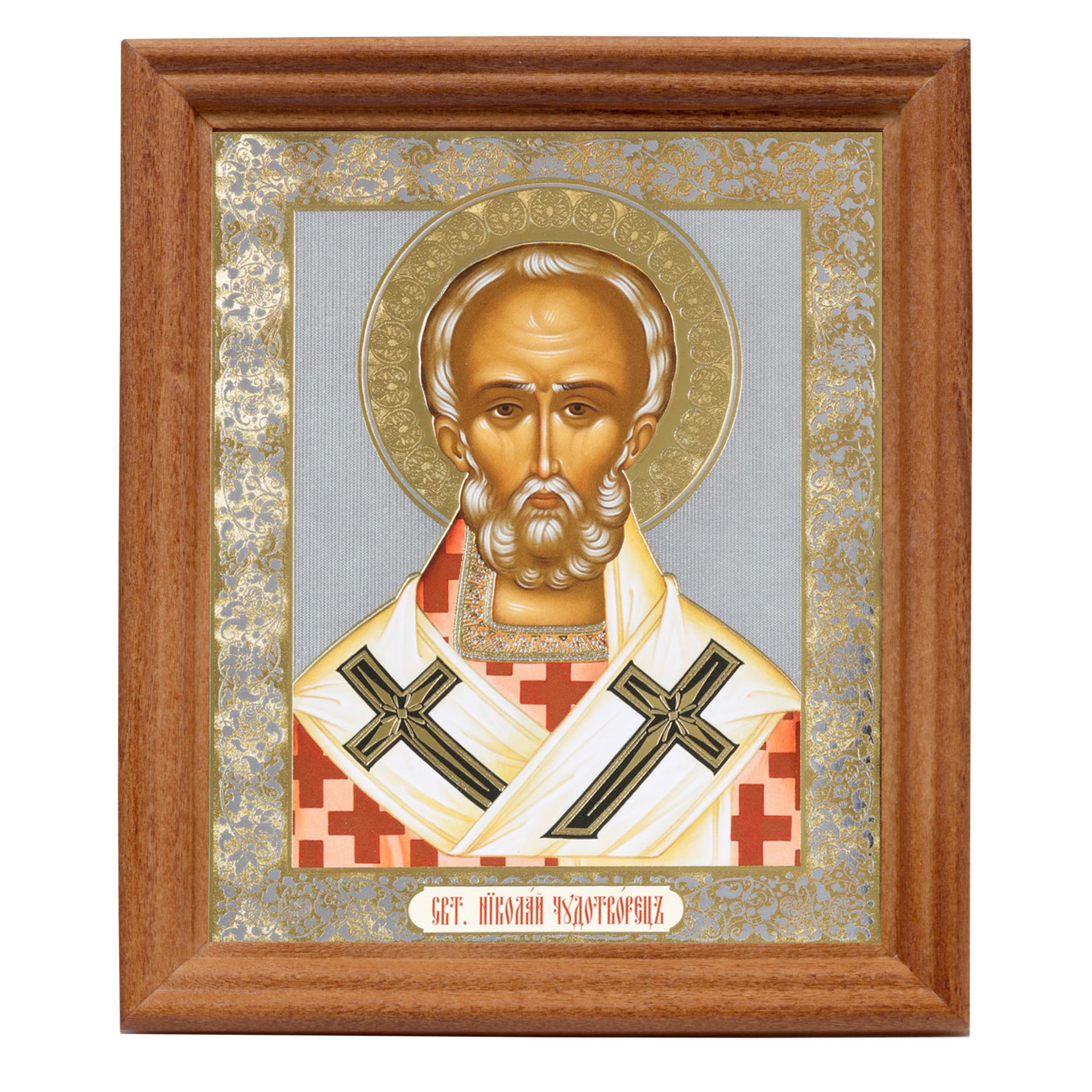 Икона в деревянной рамке №3 11х13 двойное тиснение Николай Чудотворец 2