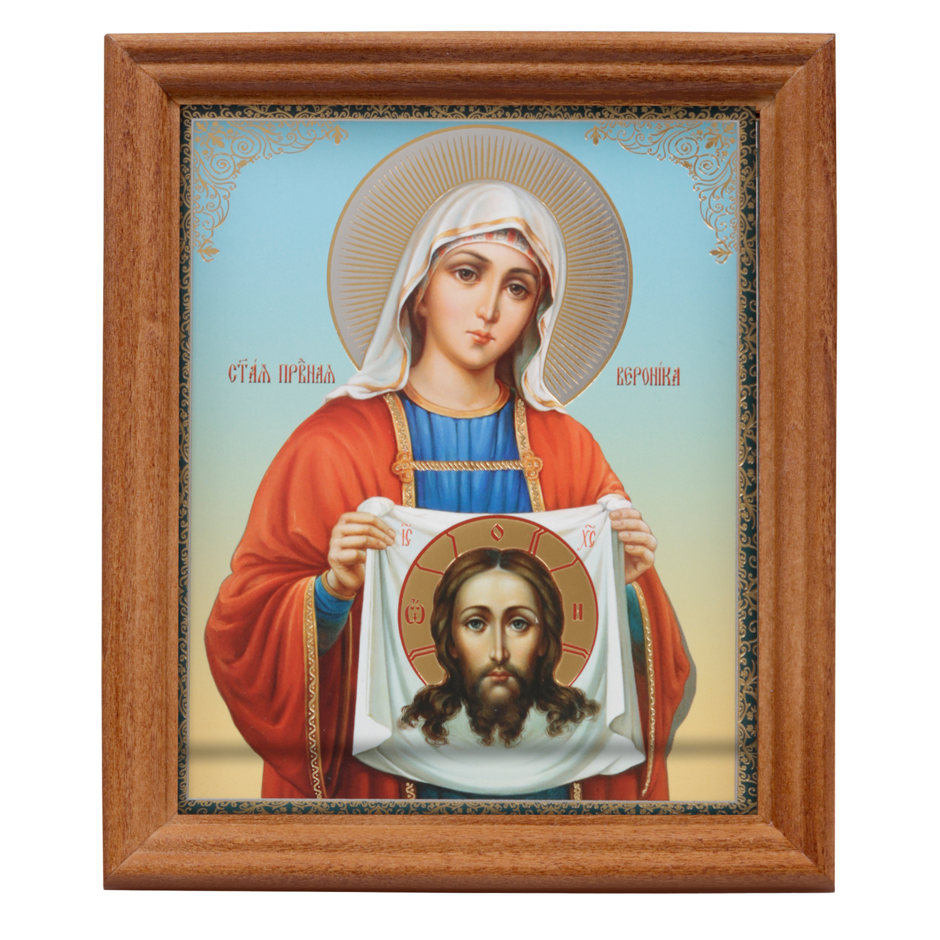 Икона в деревянной рамке №3 11х13 двойное тиснение Вероника Палестинская
