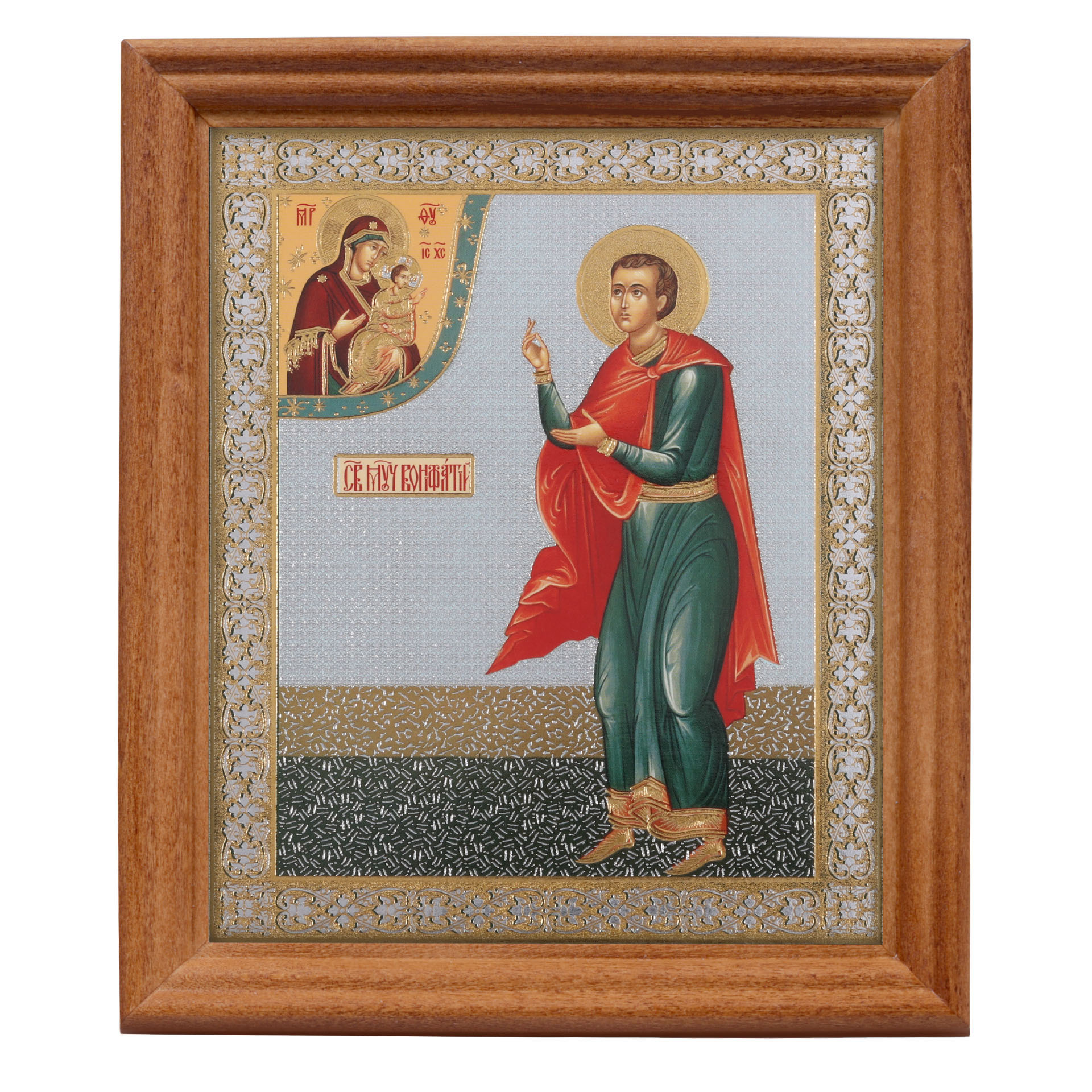 Икона в деревянной рамке №3 11х13 двойное тиснение Вонифатий
