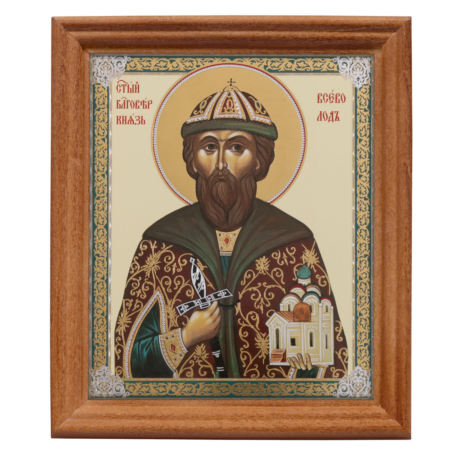 Икона в деревянной рамке №3 11х13 двойное тиснение Всеволод