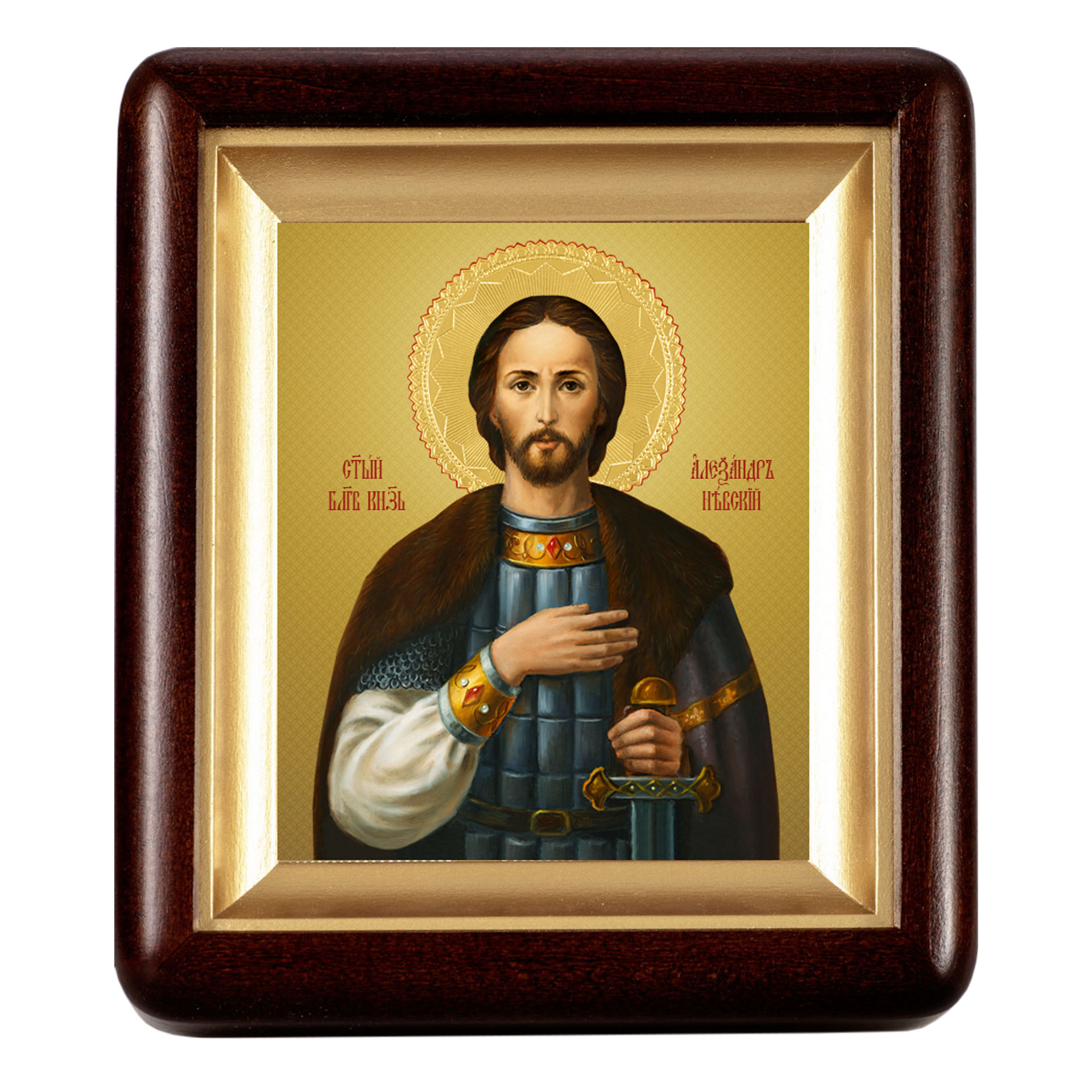 Икона в киоте 11х13 фигурный, изображение на пластике Александр Невский поясной