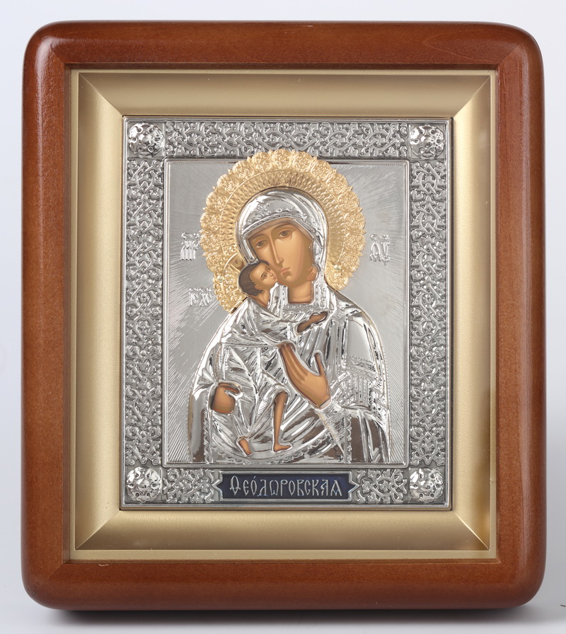 Икона в киоте 11х13 фигурный, темпера, риза, никель, эмаль Феодоровская БМ