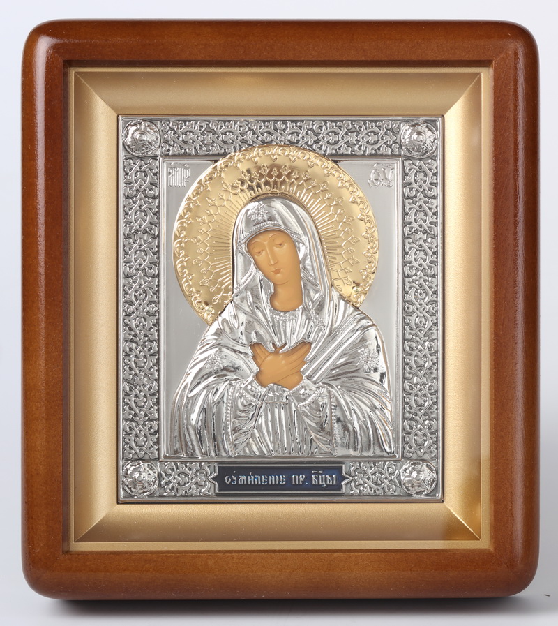 Икона в киоте 11х13 фигурный, темпера, риза, никель, эмаль Умиление БМ
