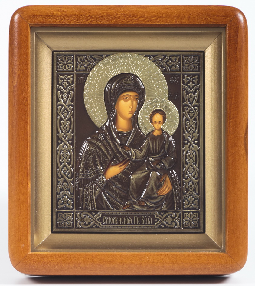 Икона в киоте 11х13 фигурный, темпера, риза патинированая Смоленская БМ