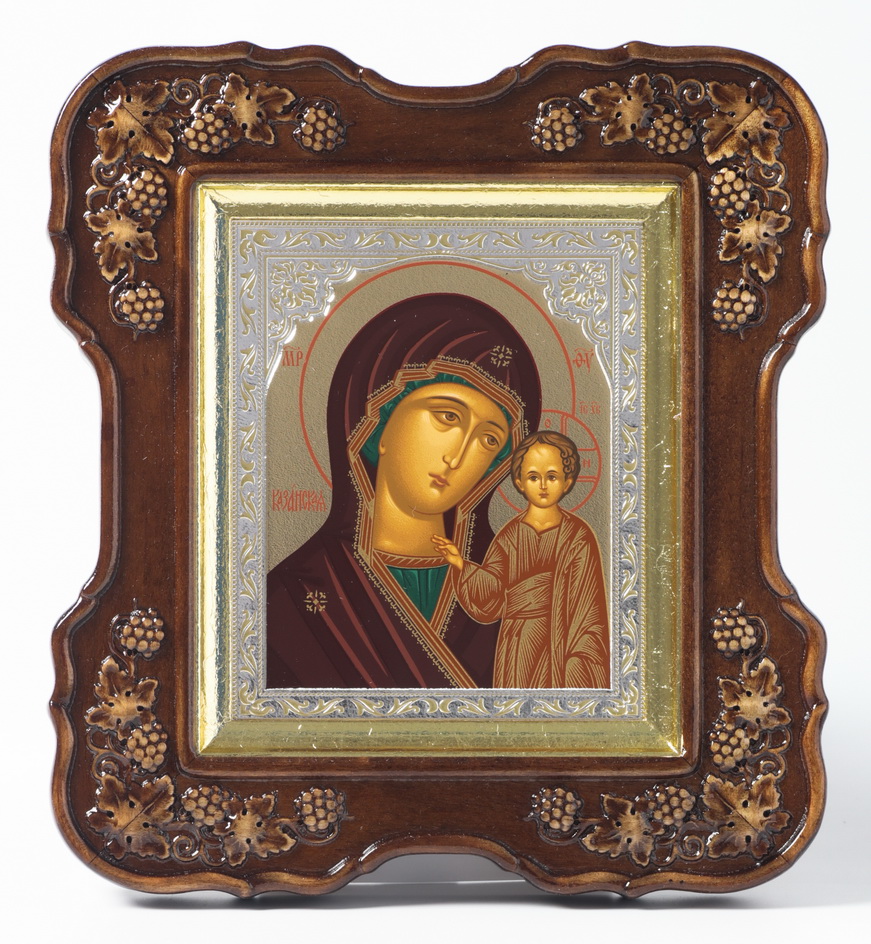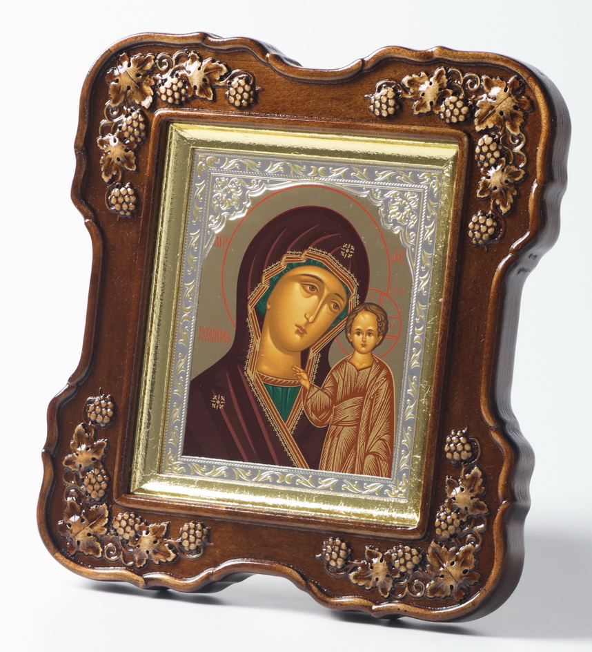 Икона в киоте 11х13 (лоза 4), темпера №8 тиснение, подрамник поталь Казанская БМ