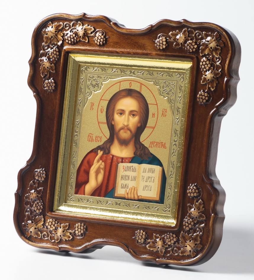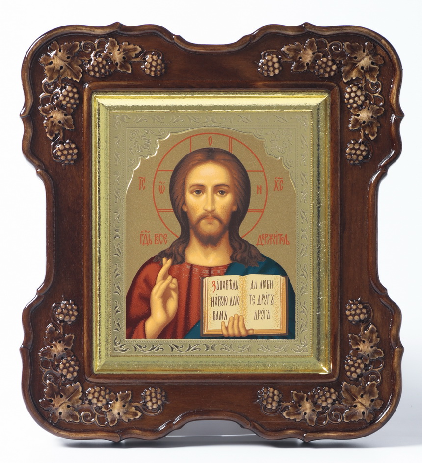 Икона в киоте 11х13 (лоза 4), темпера тиснение, подрамник поталь Спаситель 1
