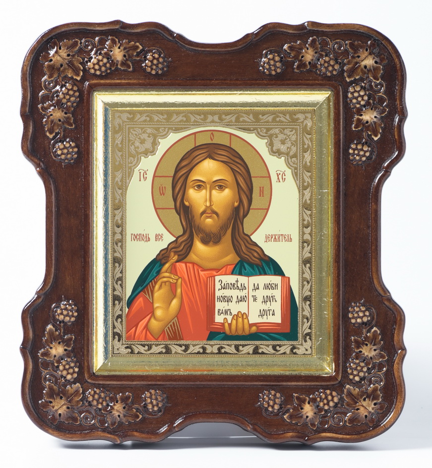 Икона в киоте 11х13 (лоза 4), темпера тиснение, подрамник поталь Спаситель