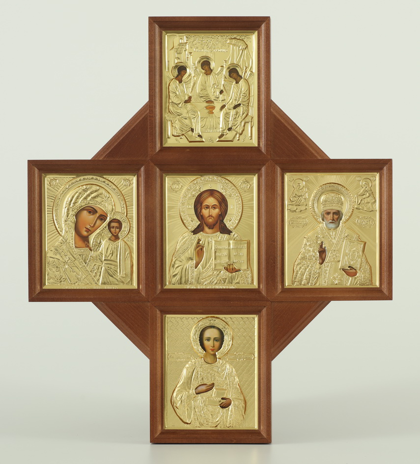 Икона в киоте 11х13 многоместная, 5 икон, риза