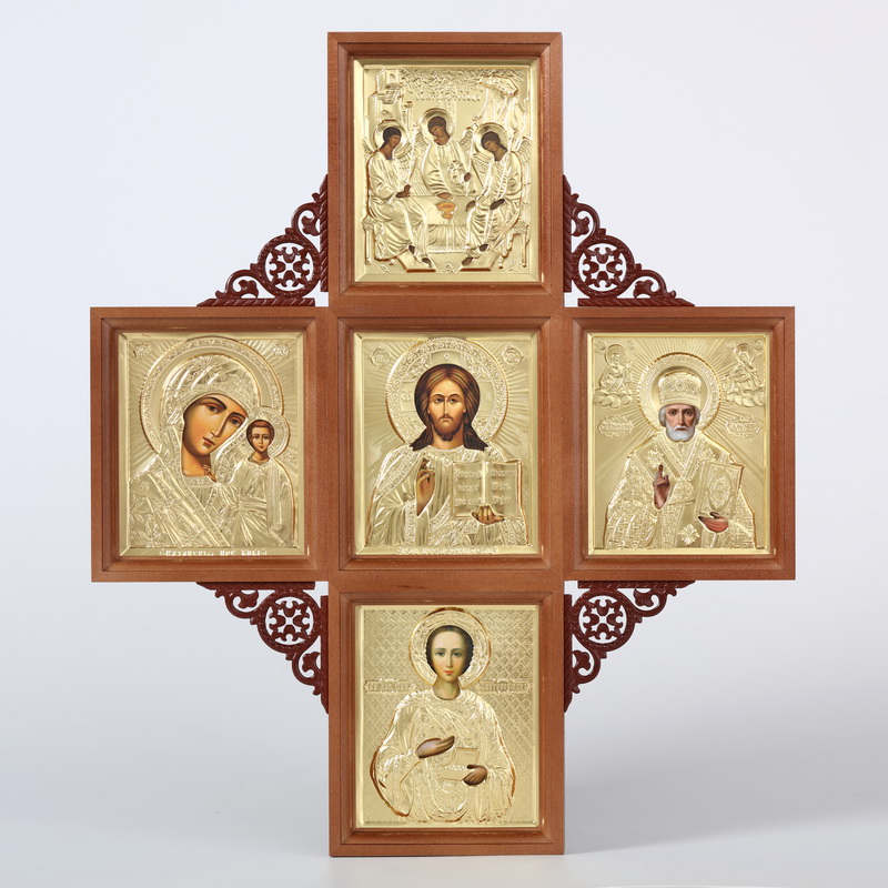 Икона в киоте 11х13 многоместная, 5 икон, риза, резная