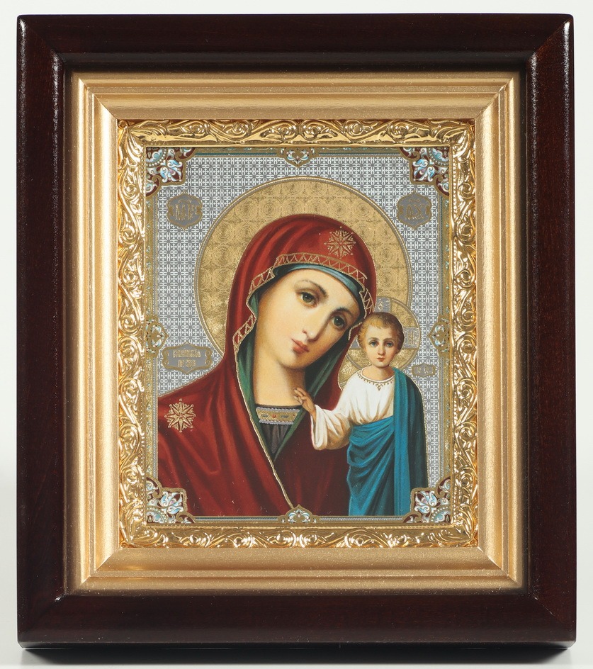 Киот-липа, аэрозольный подрамник, рамка-латунь(золочение),стекло, изображение-полиграфия