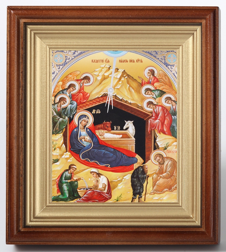 Икона в киоте 11х13 сложный, двойное тиснение Рождество Христово 39