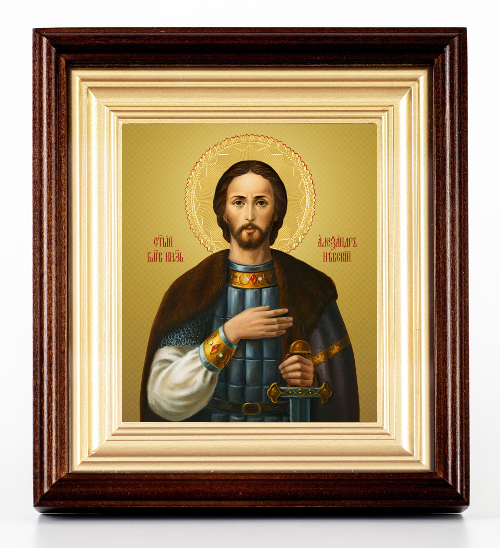 Икона в киоте 11х13 сложный, изображение на пластике Александр Невский поясной