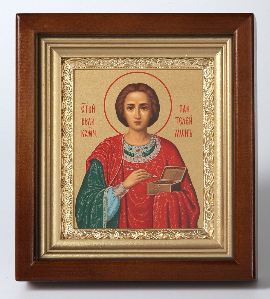 Икона в киоте 11х13 сложный, темпера, рамка золочёная