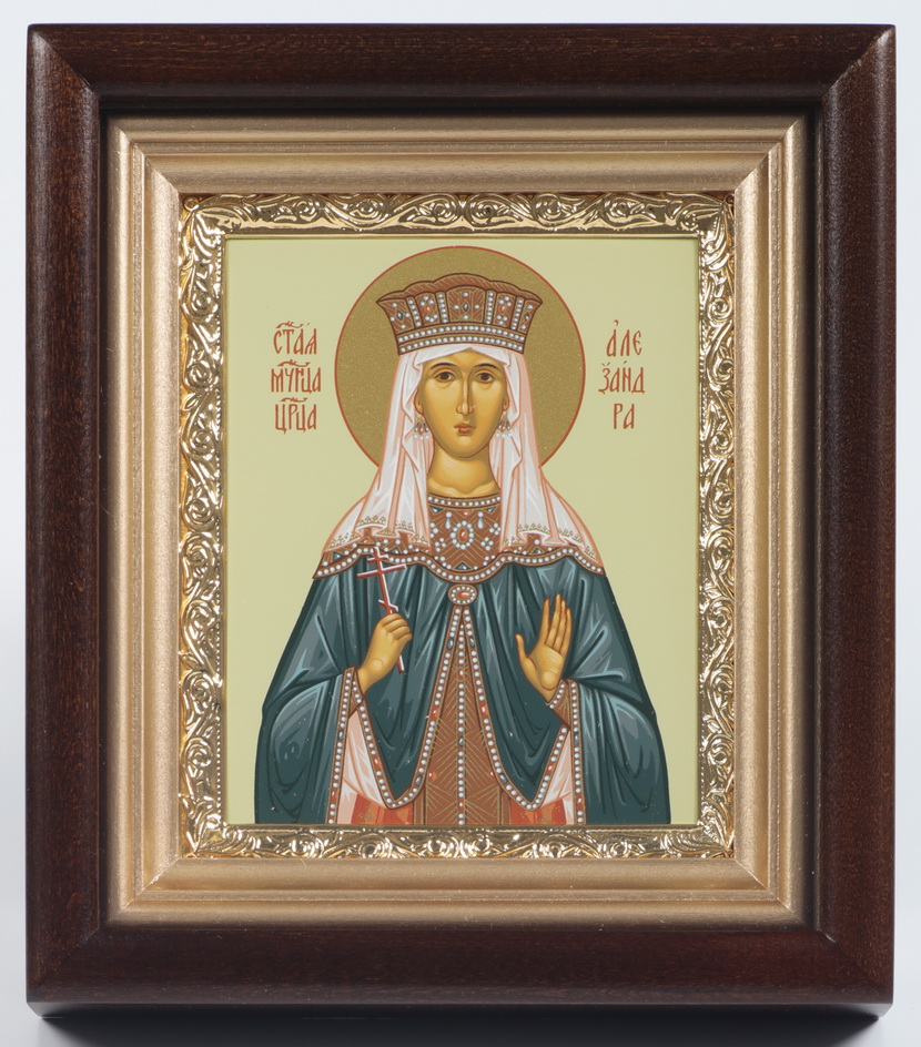 Икона в киоте 11х13 сложный, темпера, рамка золочёная Александра