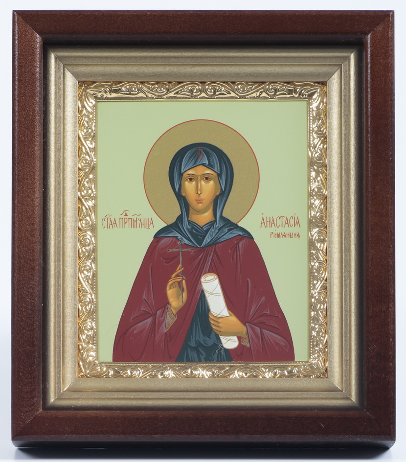 Икона в киоте 11х13 сложный, темпера, рамка золочёная Анастасия Римляныня