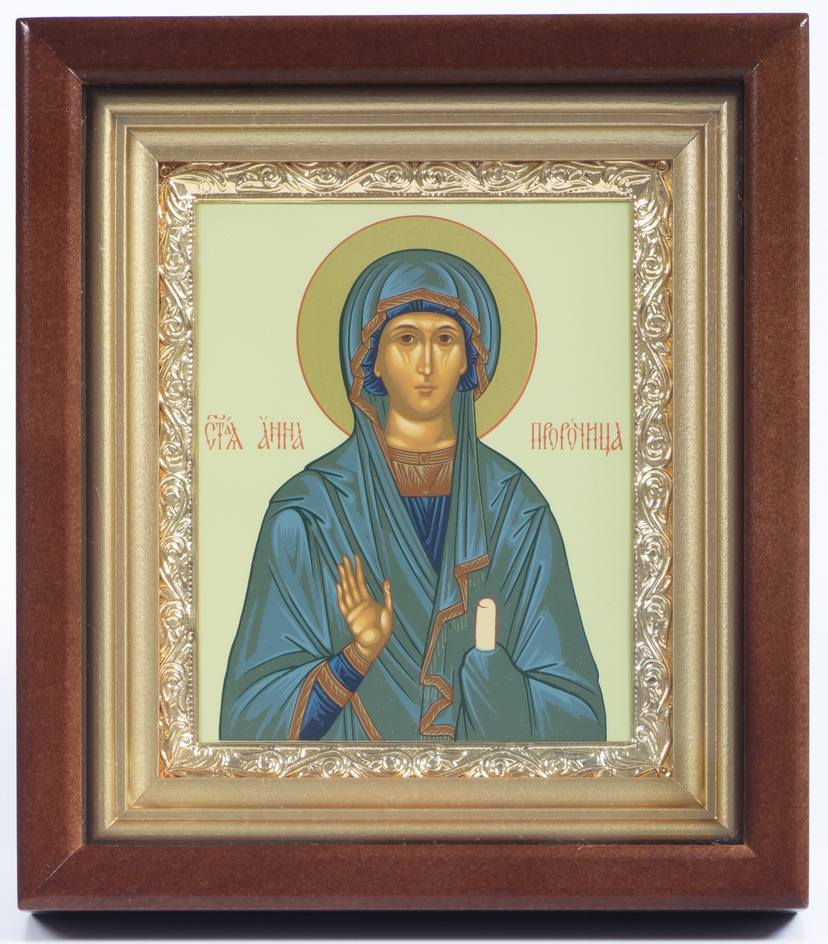 Икона в киоте 11х13 сложный, темпера, рамка золочёная Анна Пророчица