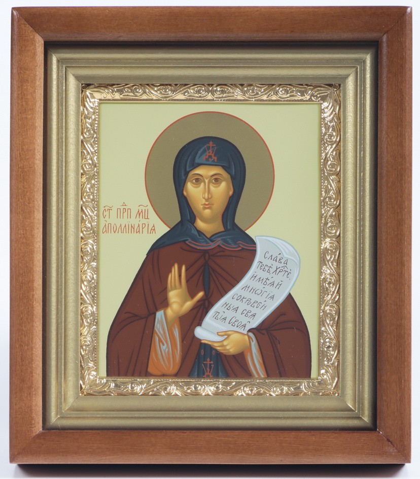 Икона в киоте 11х13 сложный, темпера, рамка золочёная Аполлинария