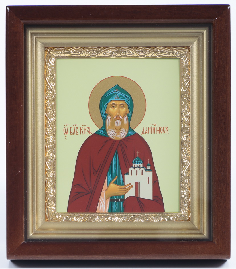 Икона в киоте 11х13 сложный, темпера, рамка золочёная Даниил Московский
