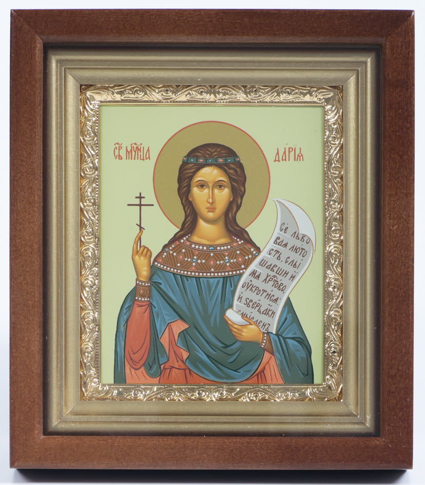 Икона в киоте 11х13 сложный, темпера, рамка золочёная Дария