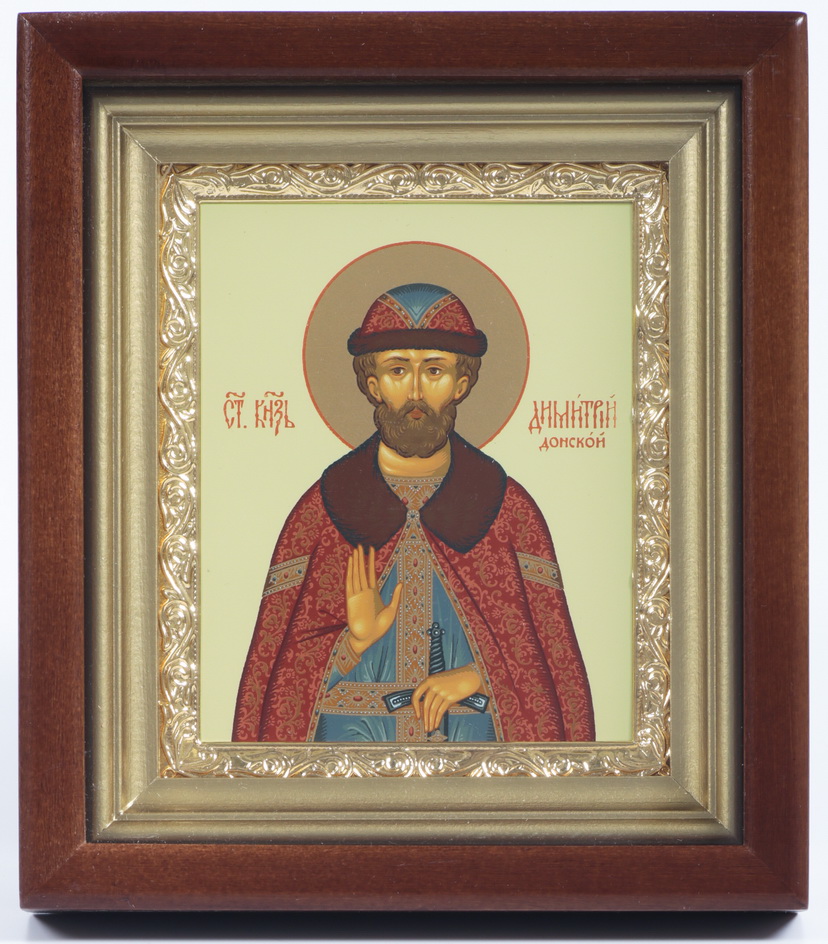 Икона в киоте 11х13 сложный, темпера, рамка золочёная Димитрий Донской