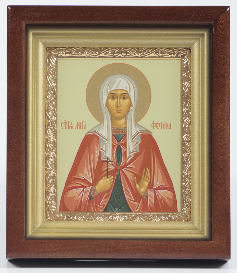 Икона в киоте 11х13 сложный, темпера, рамка золочёная Фотина (Светлана)