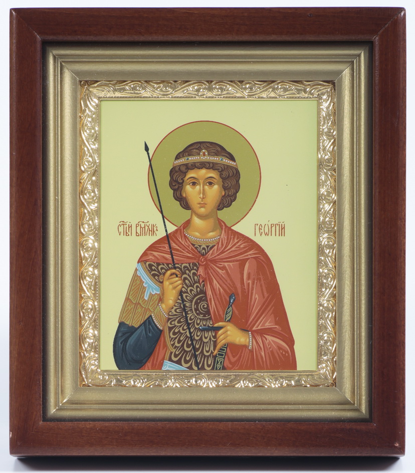 Икона в киоте 11х13 сложный, темпера, рамка золочёная Георгий Победоносец