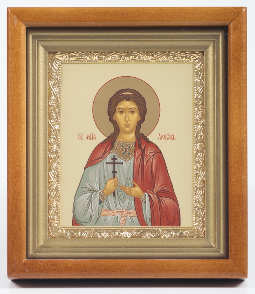 Икона в киоте 11х13 сложный, темпера, рамка золочёная Любовь