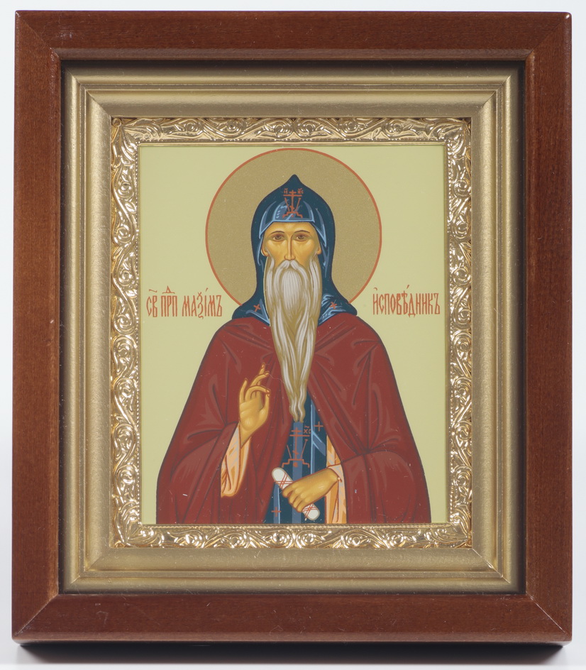 Икона в киоте 11х13 сложный, темпера, рамка золочёная Максим Исповедник