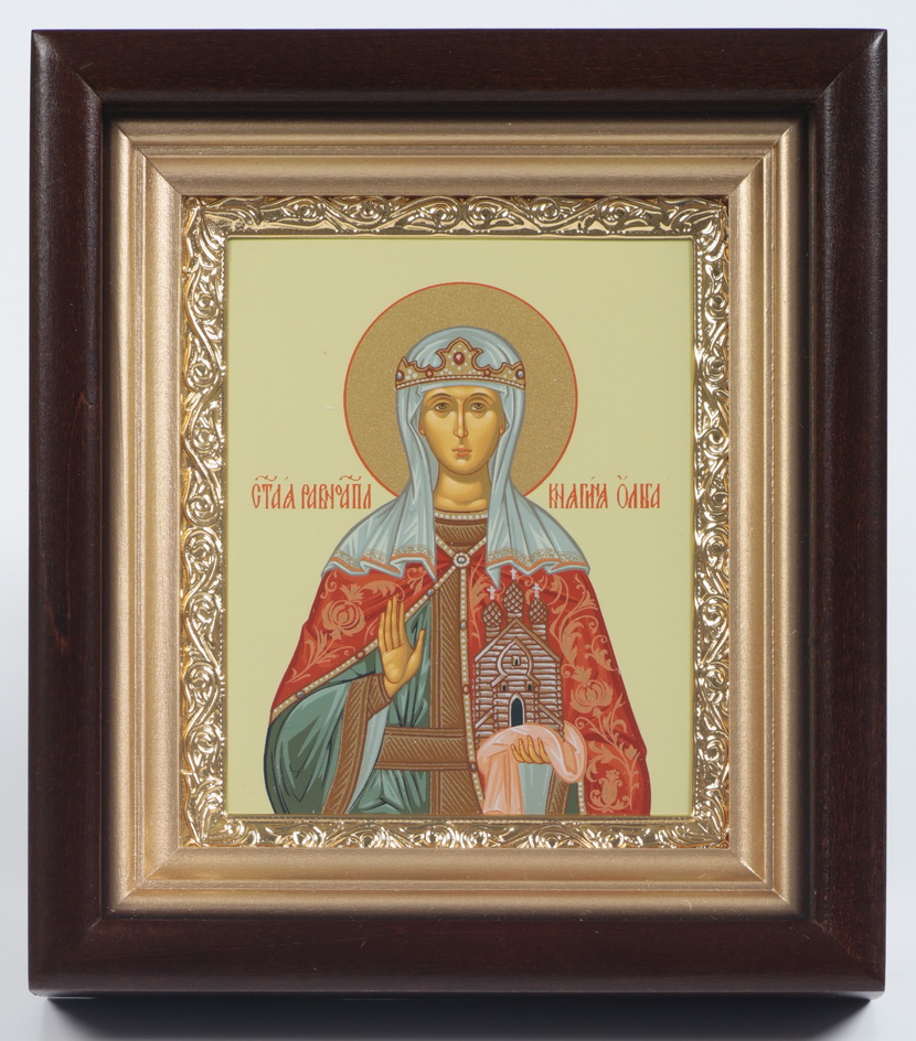 Икона в киоте 11х13 сложный, темпера, рамка золочёная Ольга