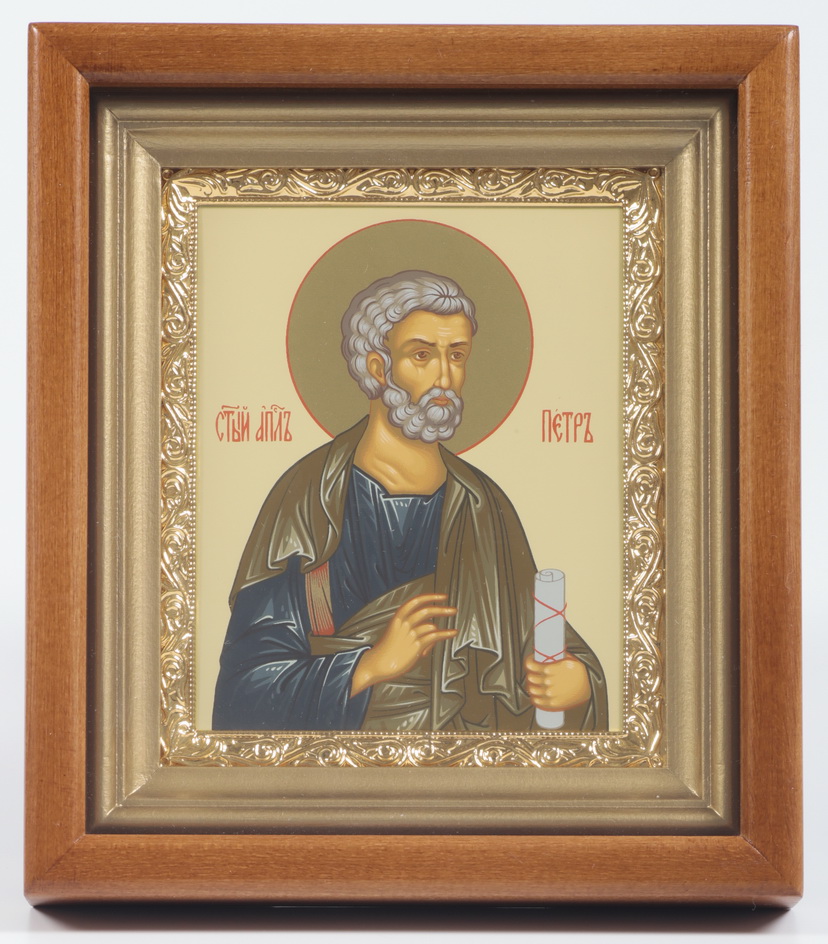 Икона в киоте 11х13 сложный, темпера, рамка золочёная Петр